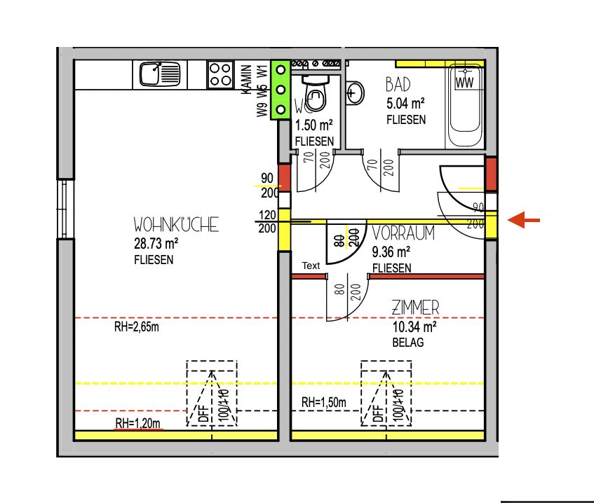 Die Wohnfläche beträgt ca. 56 m² und gliedert sich in einen großzügigen Wohn-Essbereich, ein Schlafzimmer, ein Badezimmer, einen geräumigen Vorraum sowie ein getrenntes WC.