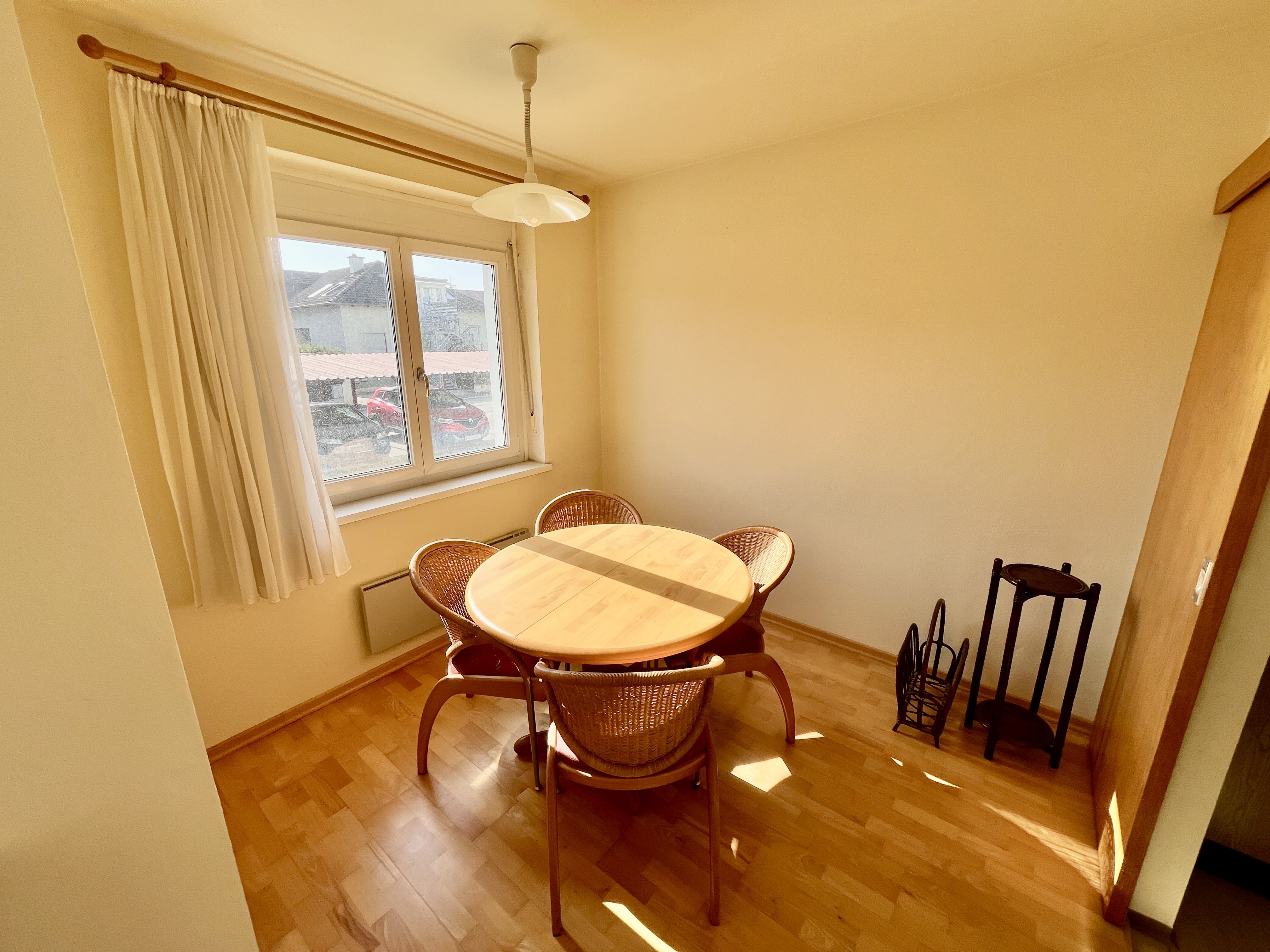- Auf der rechten Seite befinden sich ein Abstellraum, das modernisierte Badezimmer, ein separates WC und die voll ausgestattete Küche.