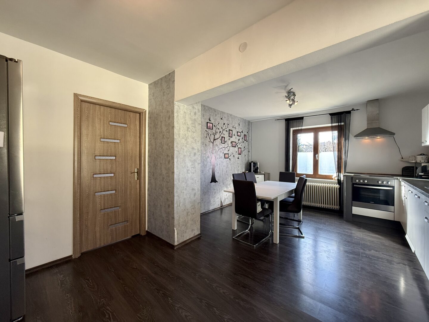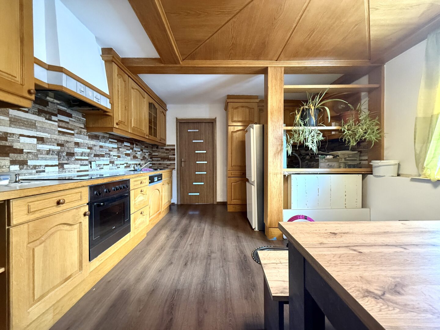 Das Haus bietet insgesamt sechs Zimmer und überzeugt mit einer durchdachten Raumaufteilung. Herzstück ist die große Küche, die ausreichend Raum für gemeinsames Kochen und gesellige Stunden bietet. Zwei komfortable Schlafzimmer, ein separates Gästezimmer sowie ein einladendes, helles Wohnzimmer schaffen ideale Voraussetzungen für Familienleben oder entspanntes Wohnen mit viel Freiraum. Zwei neu ausgestattete, moderne Badezimmer sorgen für zeitgemäßen Komfort. Ein besonderes Extra ist die zusätzliche Küche im Obergeschoss mit direktem Zugang zu einem Lesezimmer & zum Balkon – perfekt für unabhängiges Wohnen, größere Familien oder kreative Nutzungsideen. Fernwärmeanschluss ist optional auch vorhanden - hier müsste die Heizungstechnik erneuert werden.