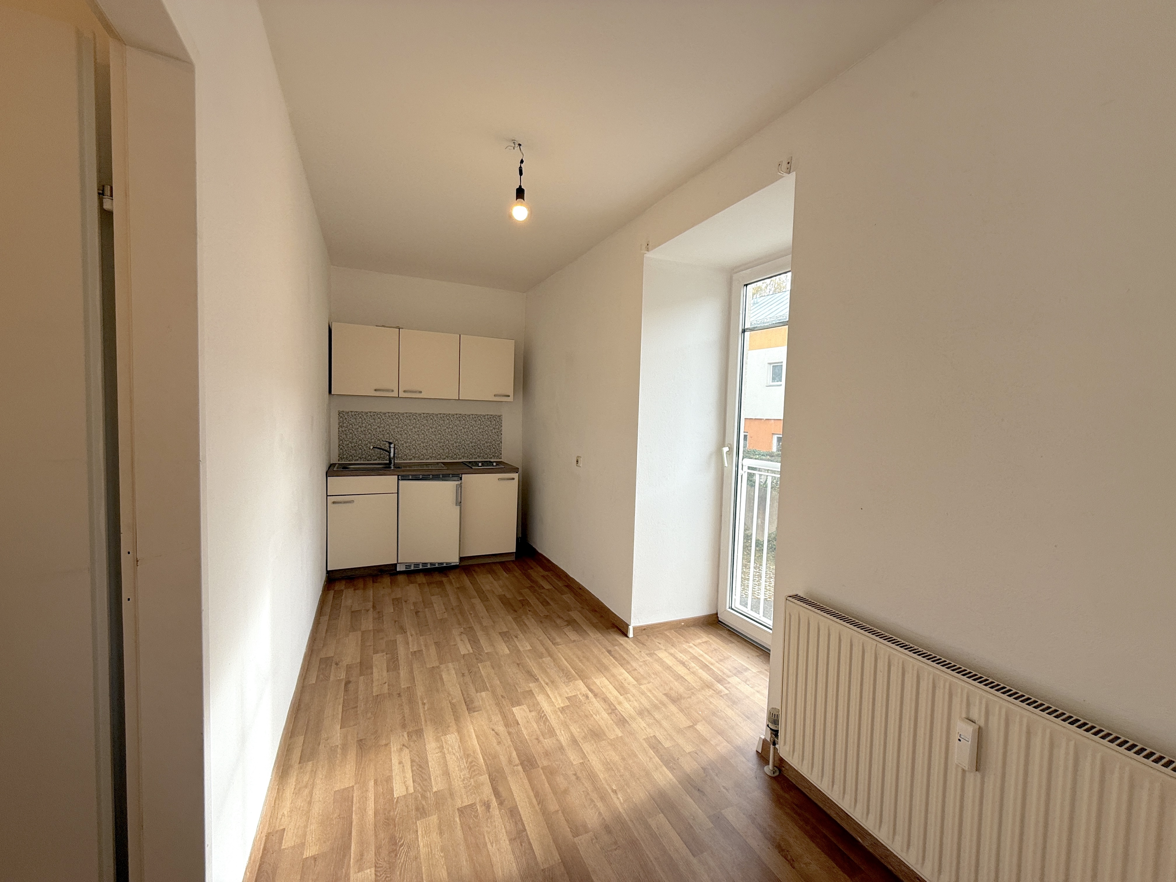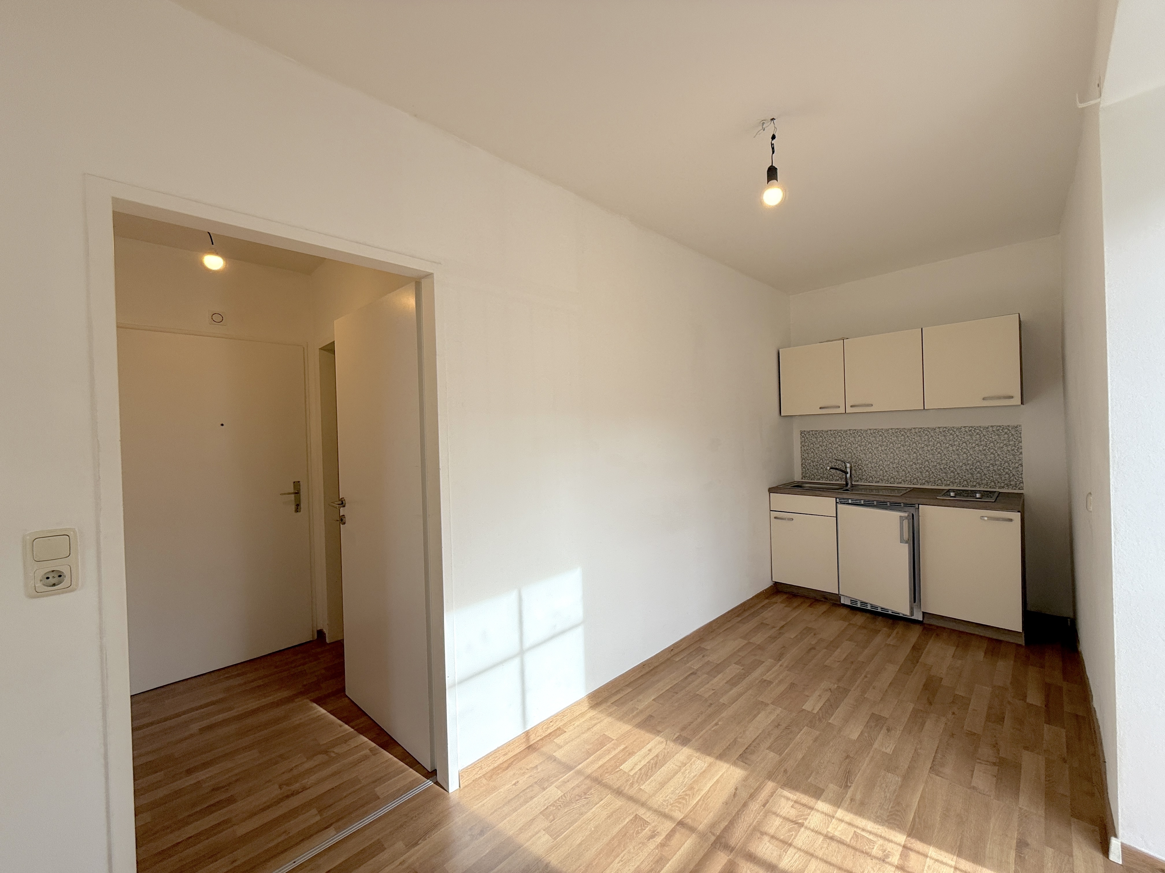 Die Wohnung verfügt über ein großzügiges Wohn- und Schlafzimmer, eine separate Küche mit vorhandener Küchenzeile sowie ein Badezimmer.