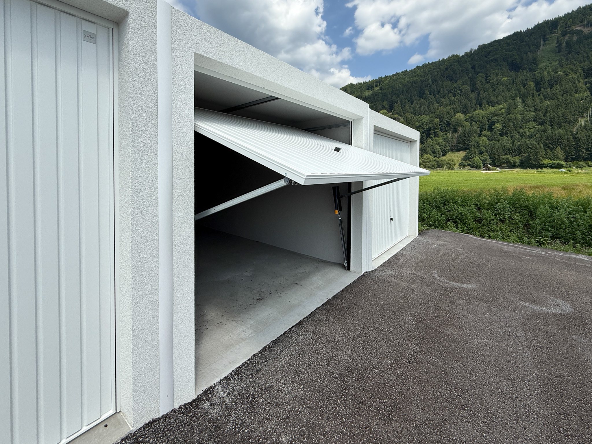 Ausgestattet mit einem elektrischen Schwingtor inkl. Fernbedienung, bietet sie eine bequeme und schnelle Nutzung.