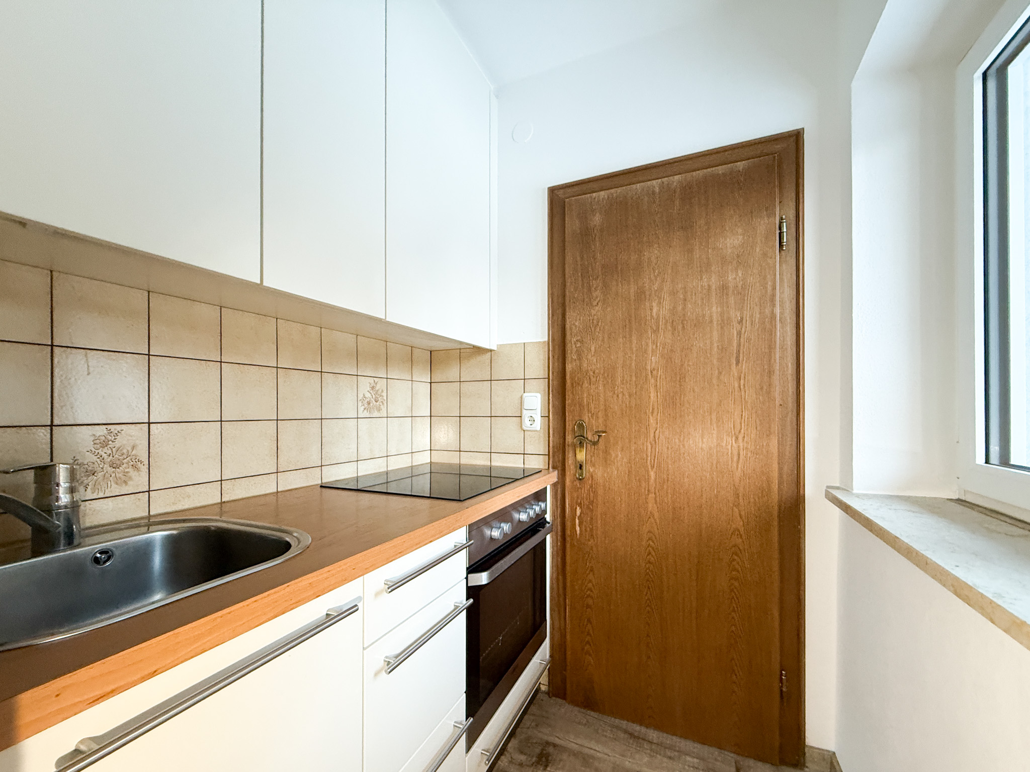 Der helle Wohn- und Schlafbereich bietet eine angenehme Wohnatmosphäre und ausreichend Platz für individuelle Gestaltung. Die Einbauküche mit praktischer Speis ist bereits vorhanden und sorgt für zusätzlichen Stauraum. Das Badezimmer mit Dusche und WC präsentiert sich gepflegt und funktional.