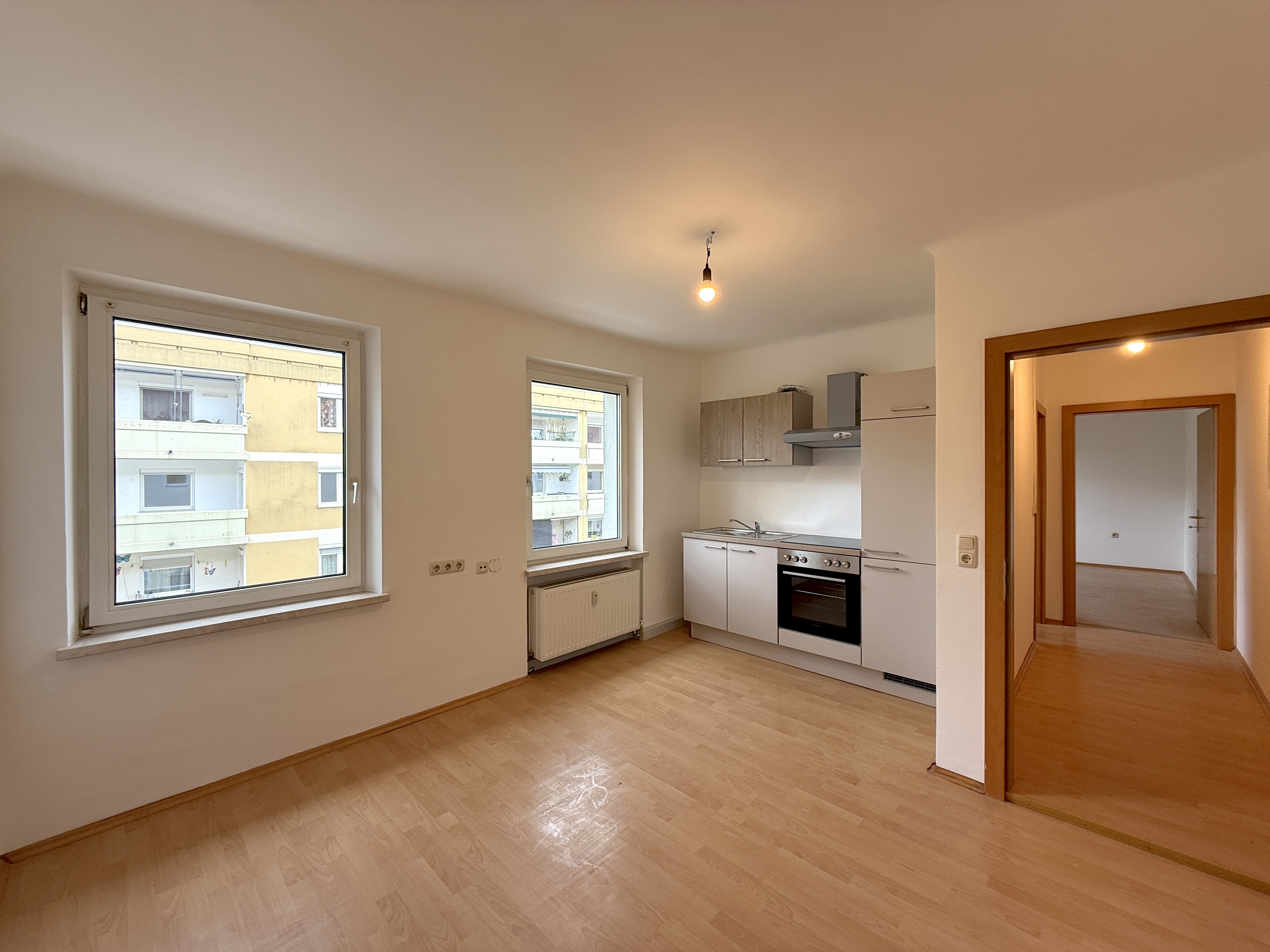 Die neue Einbauküche ermöglicht einen sofortigen Einzug ohne zusätzlichen Aufwand. Neben der Wohnküche steht ein separates Schlafzimmer zur Verfügung, wodurch sich die Wohnung ideal für Singles oder Paare eignet.