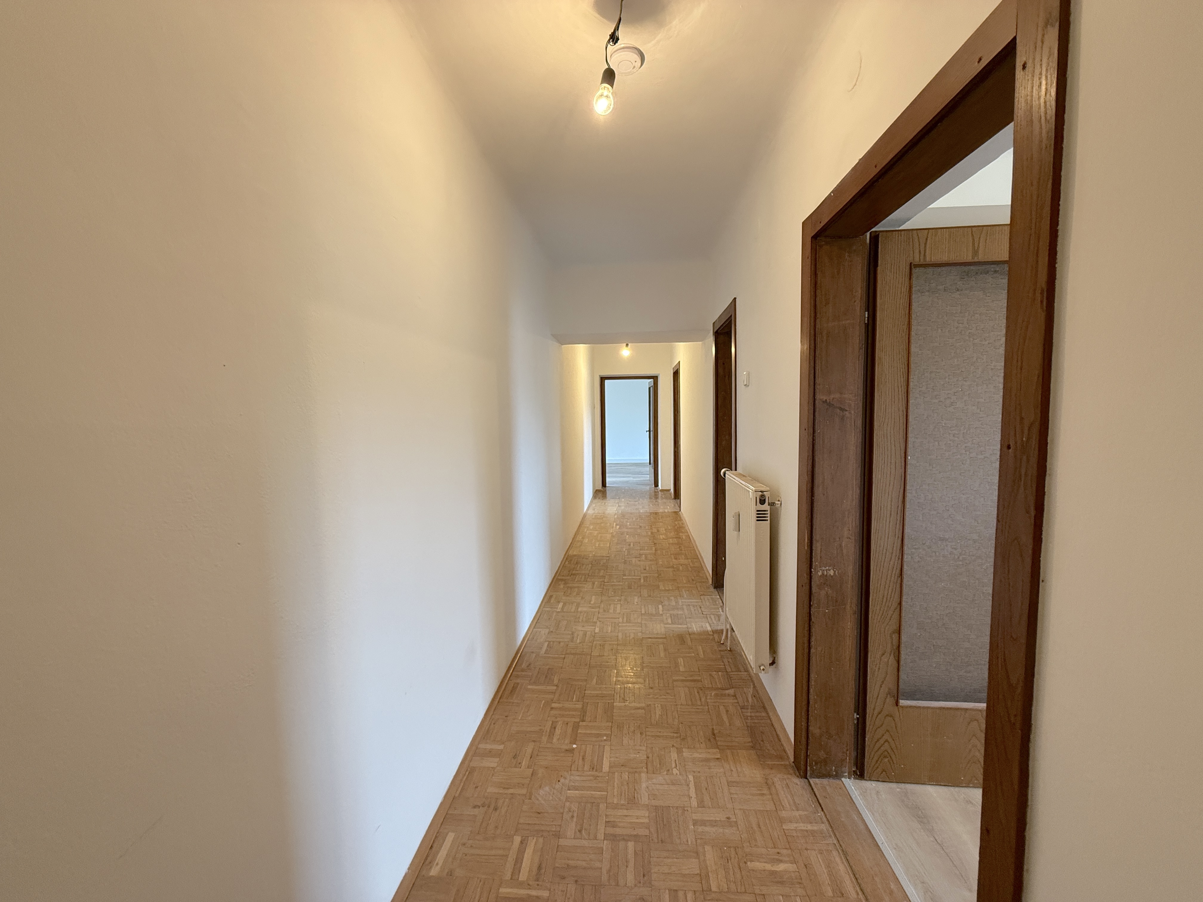 Nach dem Betreten gelangen Sie in einen zentralen Flur, von dem aus nahezu alle Bereiche der Wohnung erschlossen sind. Die gut geschnittenen Räume bieten vielseitige Gestaltungsmöglichkeiten und ausreichend Platz für individuelles Wohnen.