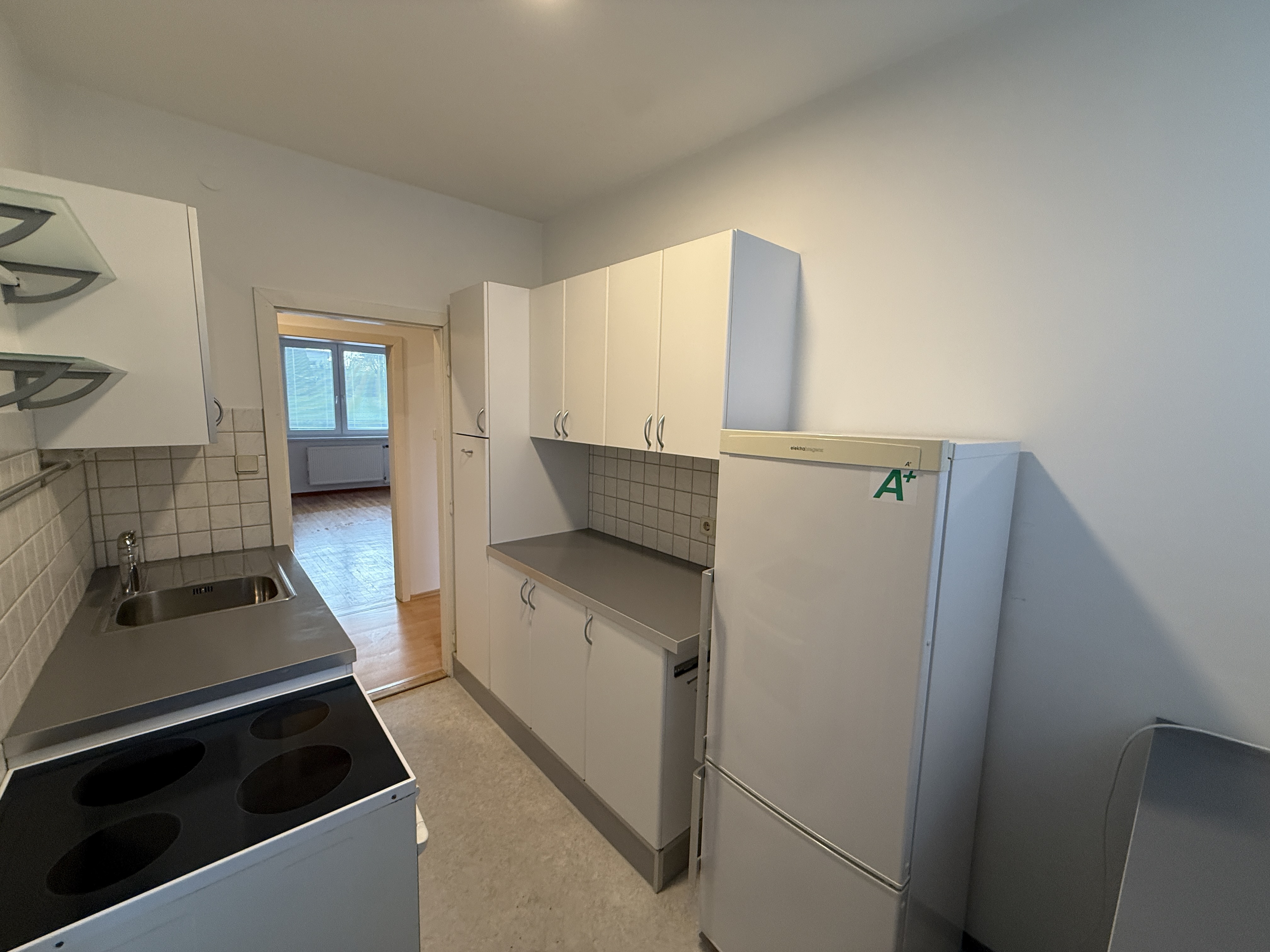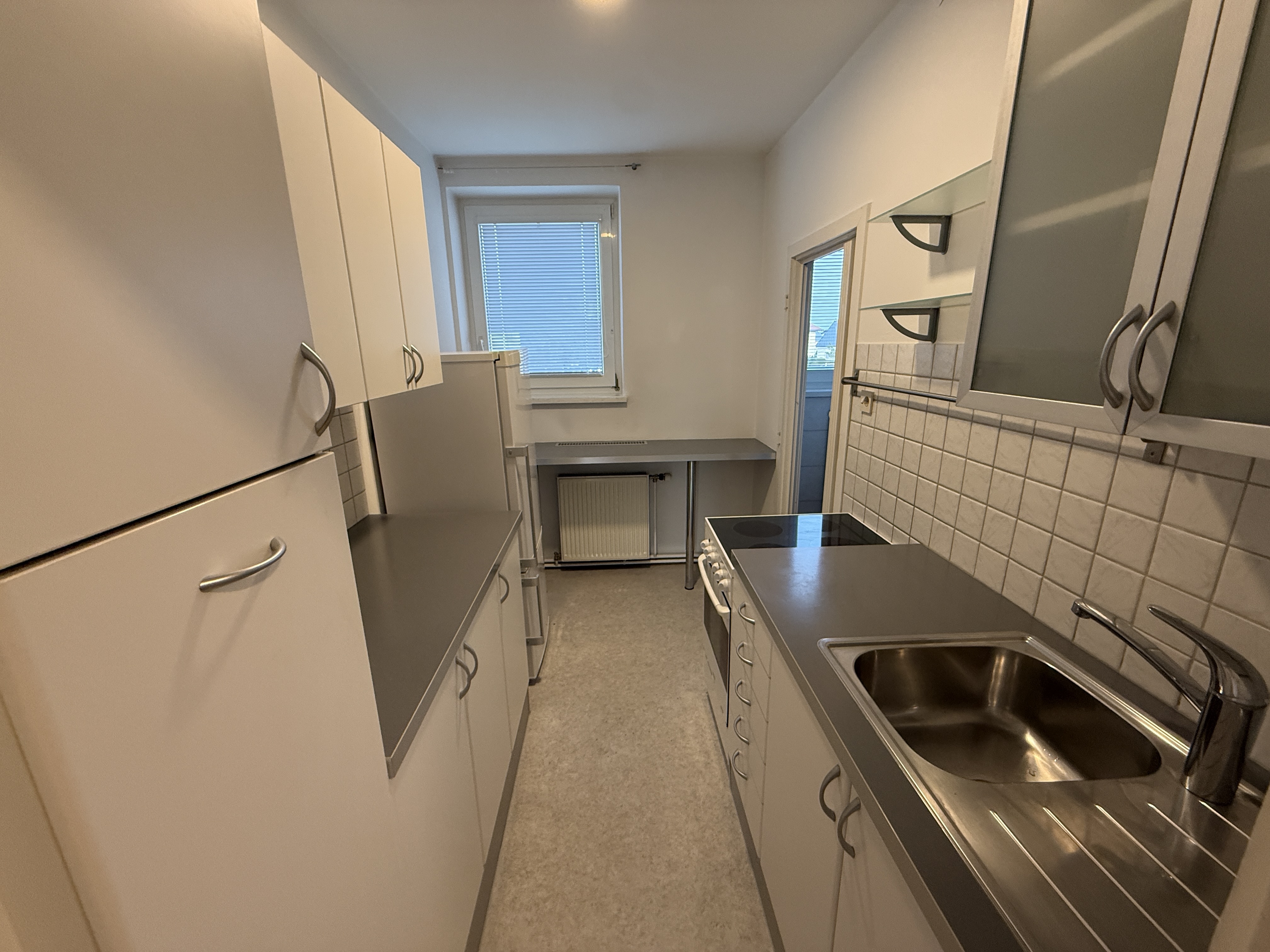 Beim Betreten gelangen Sie in einen Vorraum, von dem aus nahezu alle Räume zentral begehbar sind. Die Wohnung verfügt über ein separates WC, einen praktischen Abstellraum, eine funktionale Küche und ein kompakt gestaltetes Badezimmer.